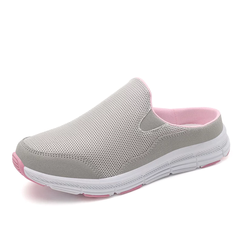 足幅の広い方にも快適にお履きいただける幅広設計の女性用履きやすい靴です。 通気性に優れた網状素材を使用し、長時間の着用でも蒸れにくく快適な履き心地を実現しました。 クッション性の高い厚底が歩行時の衝撃を和らげ、軽量設計で疲れにくいのが特徴です。 紐なしで簡単に脱ぎ履きができるフィットネスシューズとして、普段使いから軽い運動まで幅広くご活用いただけます。