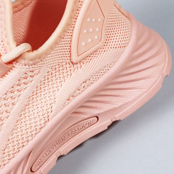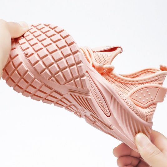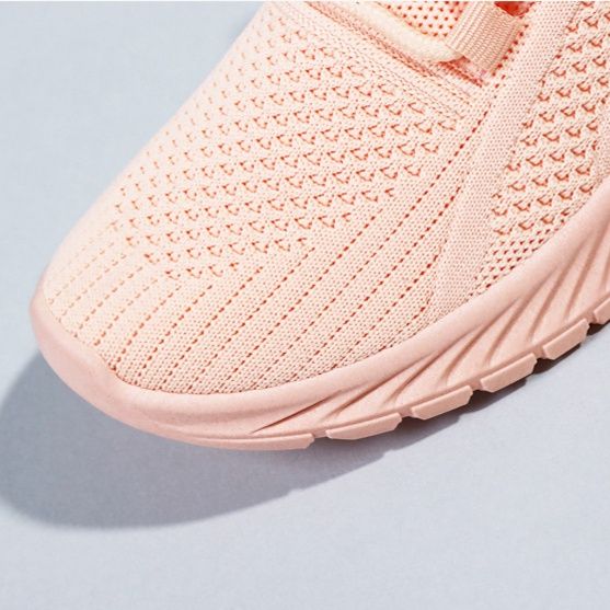 通気性に優れた編み込み素材のアッパーが足を快適に包み込み、長時間の運動でも蒸れを軽減します。